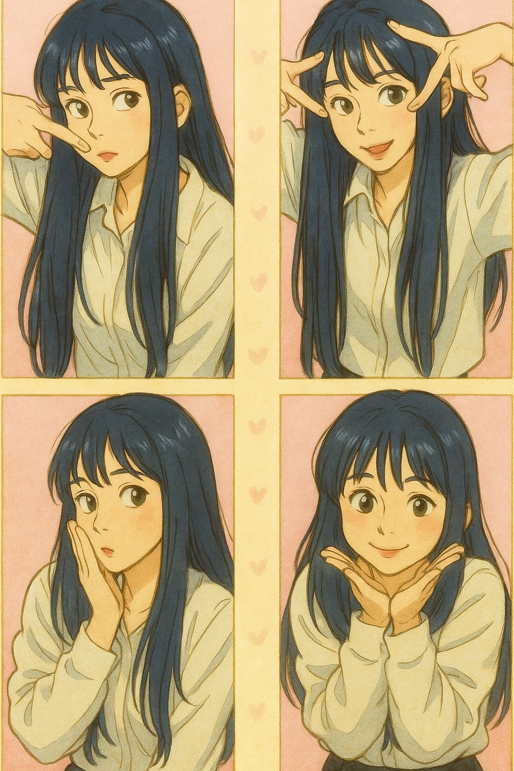 가장 섬세하고 감정 중심적인 포즈 구성입니다. “귀여운 제스처”보다 머리..